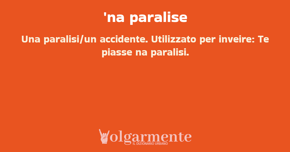 su0 down0 +0 Una paralisi/un accidente. Utilizzato per inveire: Te piasse na paralisi. da Anonimo Perugia, PG, Umbria