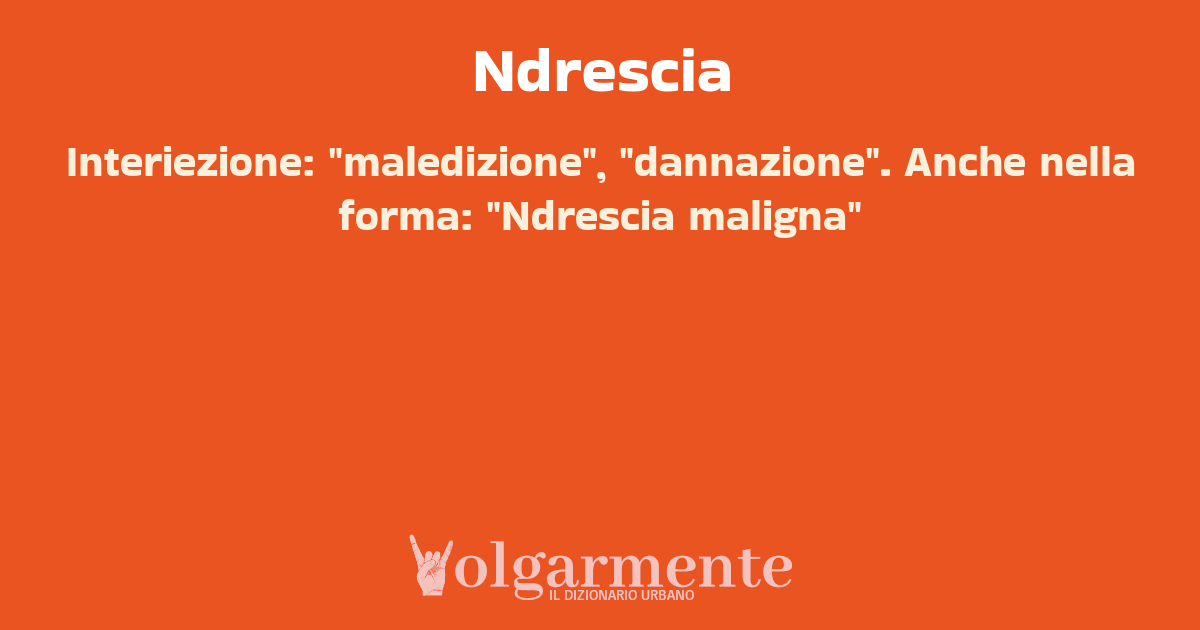 su0 down0 +0 Interiezione: "maledizione", "dannazione". Anche nella forma: "Ndrescia maligna" da La_npot_d_Fedora Castiglione Messer Marino, CH, Abruzzo