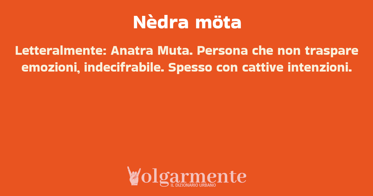 su0 down0 +0 Letteralmente: Anatra Muta. Persona che non traspare emozioni, indecifrabile. Spesso con cattive intenzioni. da Anonimo Gavardo, BS, Lombardia