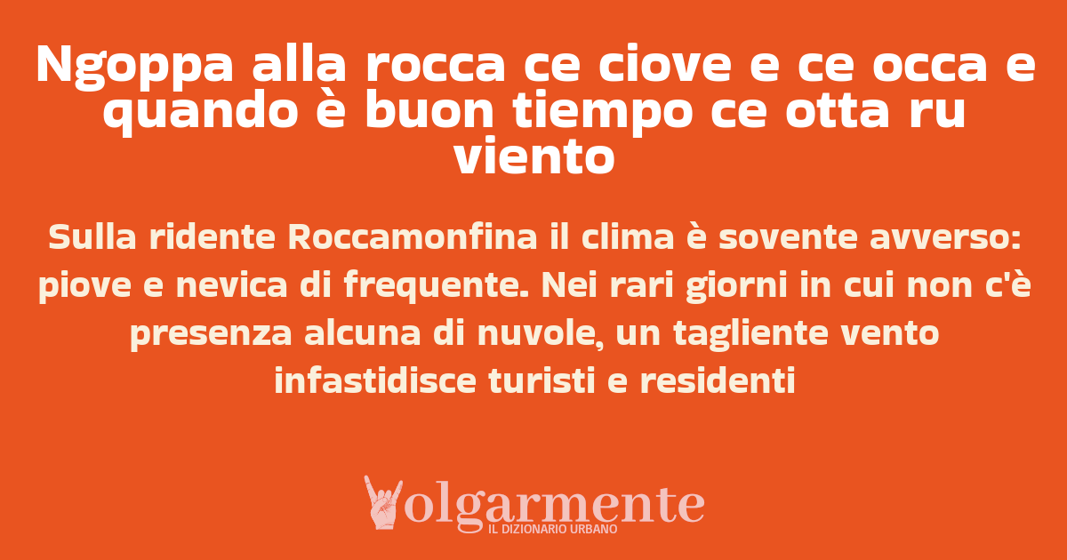 su0 down0 +0 Sulla ridente Roccamonfina il clima è sovente avverso: piove e nevica di frequente. Nei rari giorni in cui non c'è presenza alcuna di nuvole, un tagliente vento infastidisce turisti e residenti da Anonimo Roccamonfina, CE, Campania