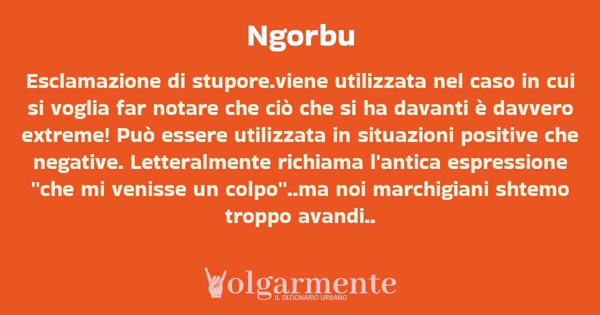 Esclamazione di stupore.viene utilizzata nel caso in cui si voglia far notare che ciò che si ha davanti è davvero extreme! Può essere utilizzata in situazioni positive che negative. Letteralmente richiama l'antica espressione ''che mi venisse un colpo''..ma noi marchigiani shtemo troppo avandi..