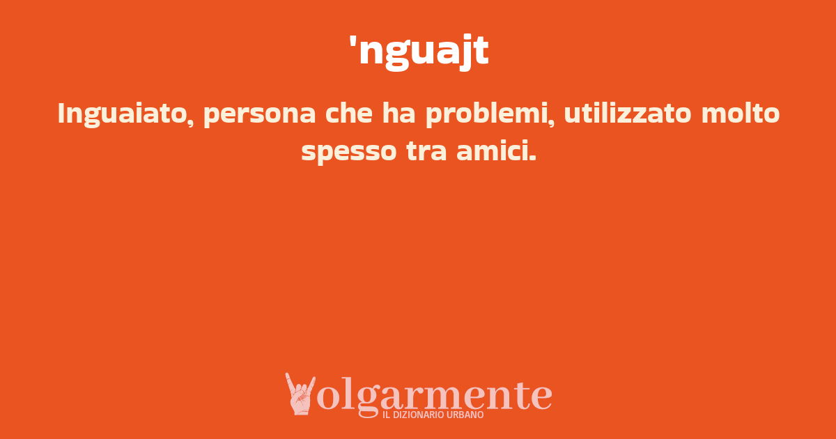 su0 down0 +0 Inguaiato, persona che ha problemi, utilizzato molto spesso tra amici. da Anonimo Cerignola, FG, Puglia