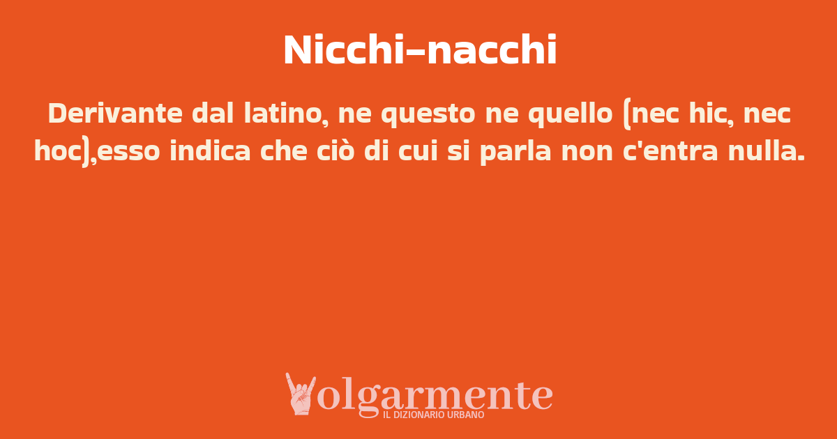 su0 down0 +0 Derivante dal latino, ne questo ne quello (nec hic, nec hoc),esso indica che ciò di cui si parla non c'entra nulla. da Anonimo Palermo, PA, Sicilia