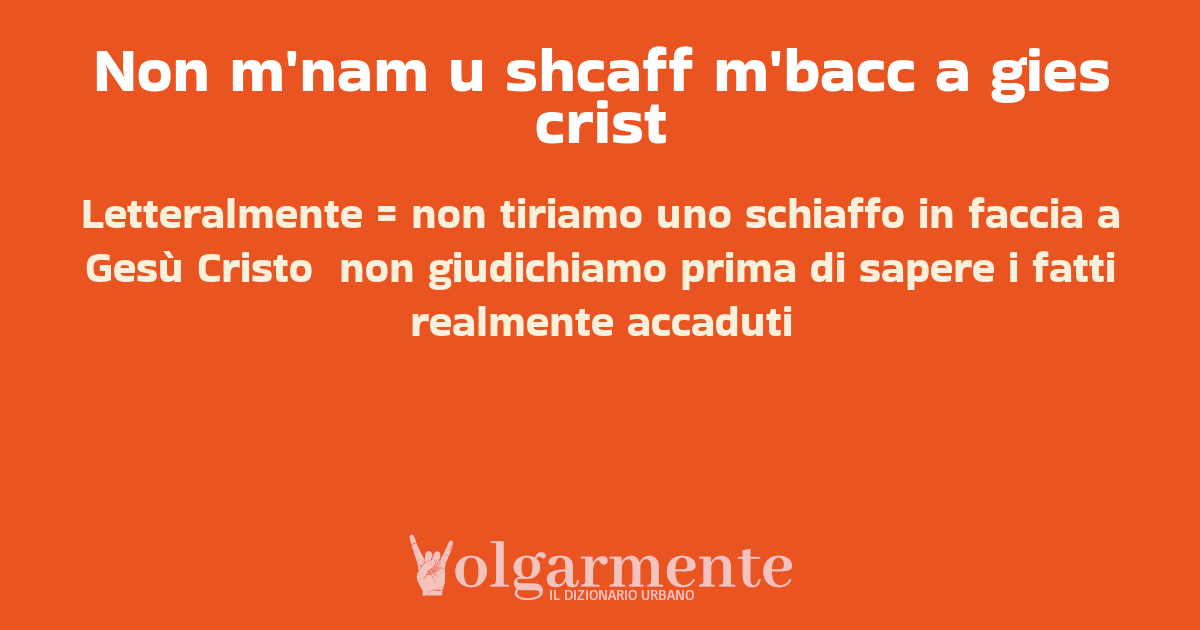 Letteralmente = non tiriamo uno schiaffo in faccia a Gesù Cristo