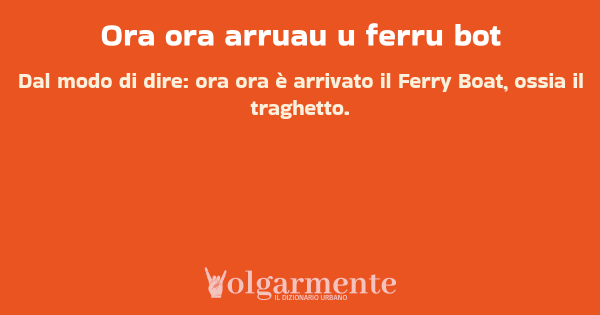 su0 down0 +0 Dal modo di dire: ora ora è arrivato il Ferry Boat, ossia il traghetto. da Anonimo Messina, ME, Sicilia