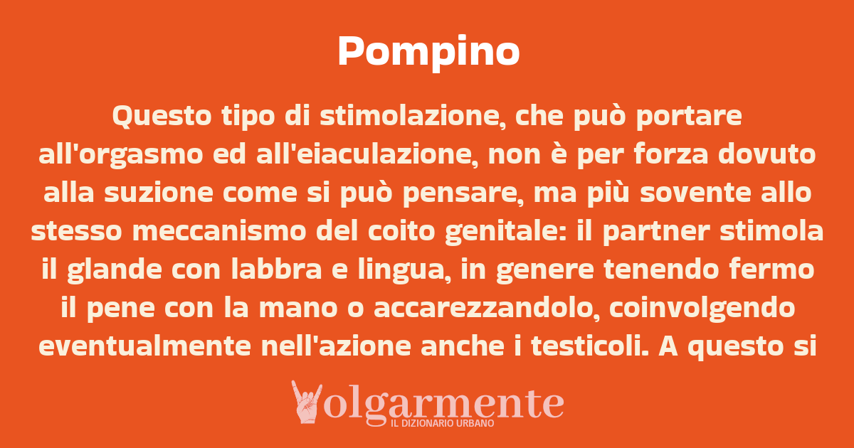 Questo tipo di stimolazione, che può portare all'orgasmo ed all'eiaculazione, non è per forza dovuto alla suzione come si può pensare, ma più sovente allo stesso meccanismo del coito genitale: il partner stimola il glande con labbra e lingua, in genere tenendo fermo il pene con la mano o accarezzandolo, coinvolgendo eventualmente nell'azione anche i testicoli.