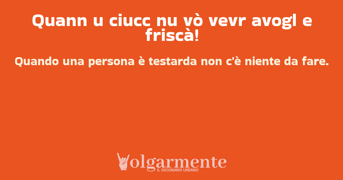 Quann u ciucc nu vò vevr avogl e friscà!