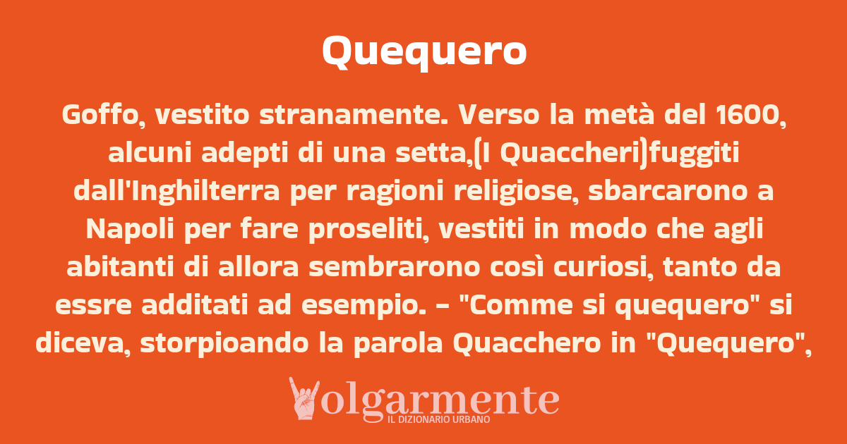 - "Comme si quequero" si diceva, storpioando la parola Quacchero in "Quequero", che così ci è pervenuta.