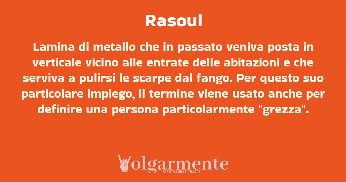 Lamina di metallo che in passato veniva posta in verticale vicino alle entrate delle abitazioni e che serviva a pulirsi le scarpe dal fango. Per questo suo particolare impiego, il termine viene usato anche per definire una persona particolarmente "grezza".