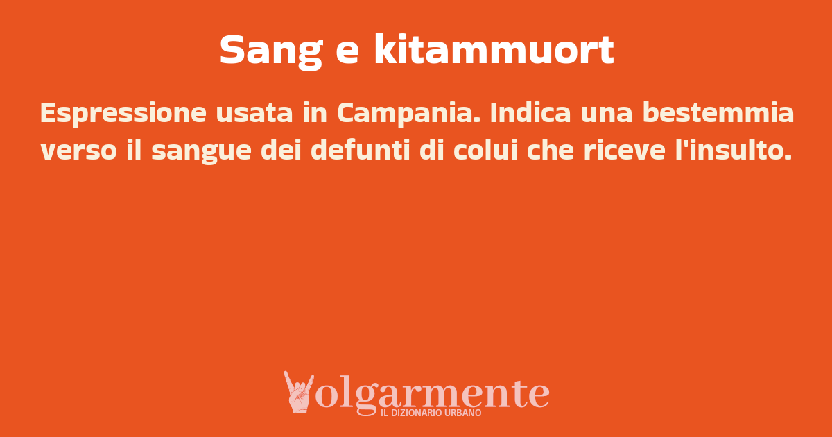 su0 down0 +0 Espressione usata in Campania. Indica una bestemmia verso il sangue dei defunti di colui che riceve l'insulto. da Anonimo Napoli, NA, Campania