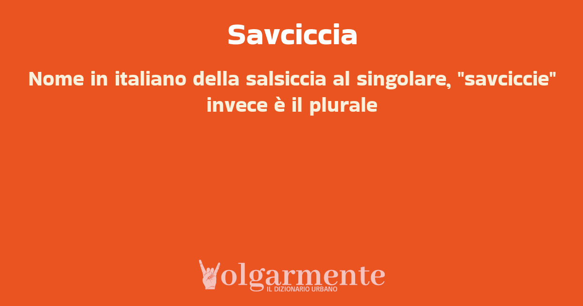 su0 down0 +0 Nome in italiano della salsiccia al singolare, "savciccie" invece è il plurale da Anonimo Colli a Volturno, IS, Molise