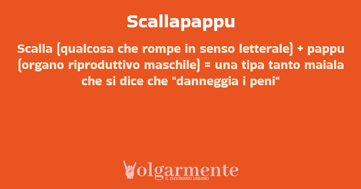 su0 down0 +0 Scalla (qualcosa che rompe in senso letterale) + pappu (organo riproduttivo maschile) = una tipa tanto maiala che si dice che "danneggia i peni" da Anonimo Cagliari, CA, Sardegna