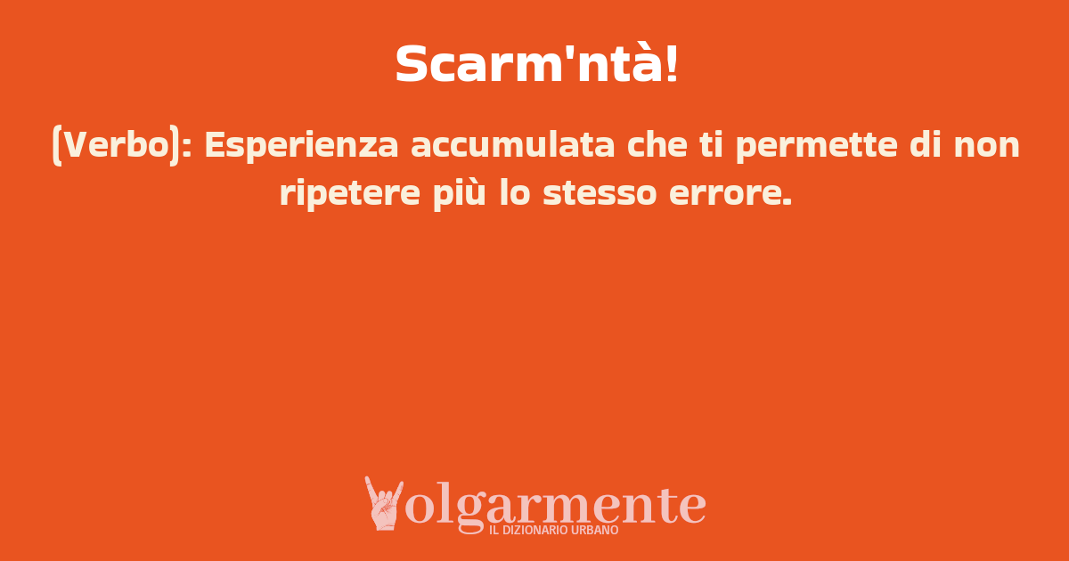 su0 down0 +0 (Verbo): Esperienza accumulata che ti permette di non ripetere più lo stesso errore. da Anonimo Santa Maria del Cedro, CS, Calabria