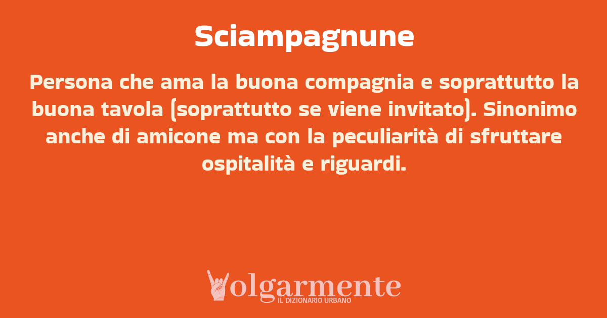 Persona che ama la buona compagnia e soprattutto la buona tavola (soprattutto se viene invitato). Sinonimo anche di amicone ma con la peculiarità di sfruttare ospitalità e riguardi.