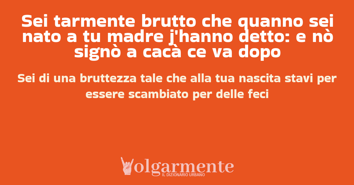 su0 down0 +0 Sei di una bruttezza tale che alla tua nascita stavi per essere scambiato per delle feci da Anonimo Roma, RM, Lazio