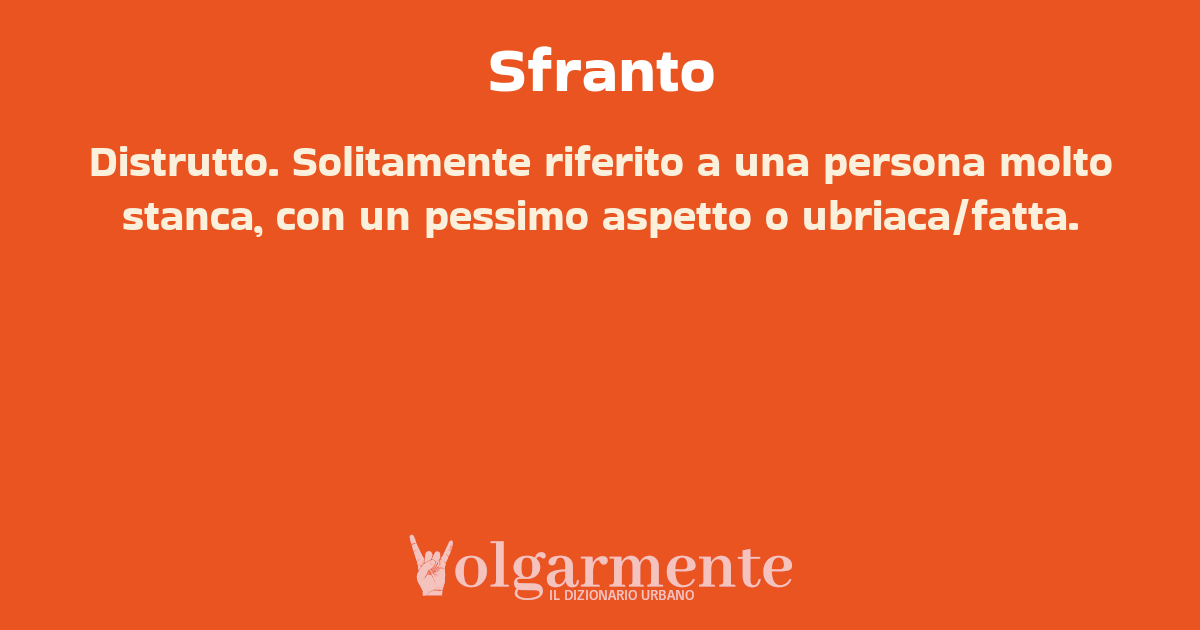 su0 down0 +0 Distrutto. Solitamente riferito a una persona molto stanca, con un pessimo aspetto o ubriaca/fatta. da Anonimo Roma, RM, Lazio
