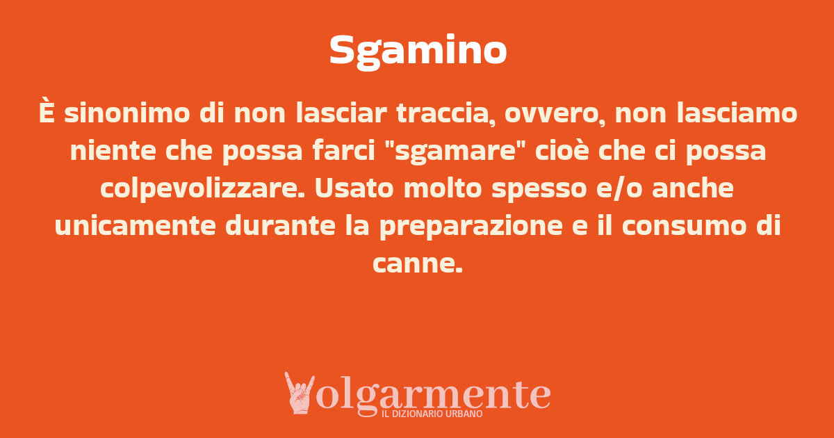 su0 down0 +0 È sinonimo di non lasciar traccia, ovvero, non lasciamo niente che possa farci "sgamare" cioè che ci possa colpevolizzare. Usato molto spesso e/o anche unicamente durante la preparazione e il consumo di canne. da Anonimo Roma, RM, Lazio