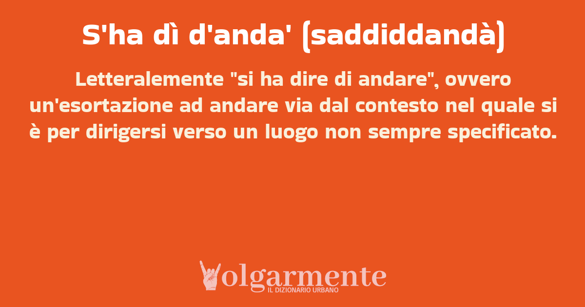 su0 down0 +0 Letteralemente "si ha dire di andare", ovvero un'esortazione ad andare via dal contesto nel quale si è per dirigersi verso un luogo non sempre specificato. da Anonimo Poggibonsi, SI, Toscana