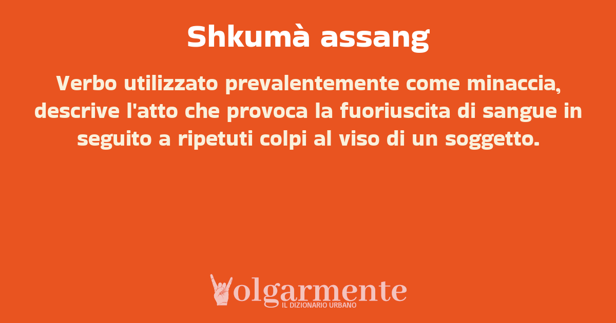 su0 down0 +0 Verbo utilizzato prevalentemente come minaccia, descrive l'atto che provoca la fuoriuscita di sangue in seguito a ripetuti colpi al viso di un soggetto. da Anonimo Marsico Nuovo, PZ, Basilicata