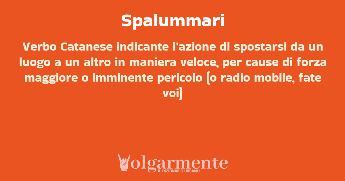 Verbo Catanese indicante l'azione di spostarsi da un luogo a un altro in maniera veloce, per cause di forza maggiore o imminente pericolo (o radio mobile, fate voi)