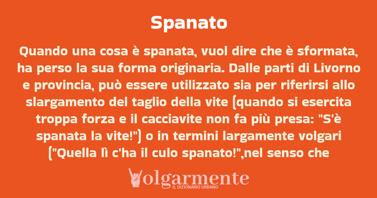 Quando una cosa è spanata, vuol dire che è sformata, ha perso la sua forma originaria. Dalle parti di Livorno e provincia, può essere utilizzato sia per riferirsi allo slargamento del taglio della vite (quando si esercita troppa forza e il cacciavite non fa più presa: "S'è spanata la vite!") o in termini largamente volgari ("Quella lì c'ha il culo spanato!",nel senso che gliel'hanno ribadito nel culo più e più volte allargando l'orifizio anale.