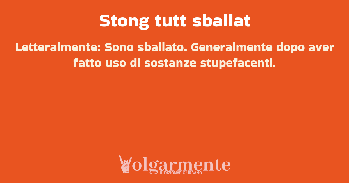 su0 down0 +0 Letteralmente: Sono sballato. Generalmente dopo aver fatto uso di sostanze stupefacenti. da Anonimo Acerra, NA, Campania
