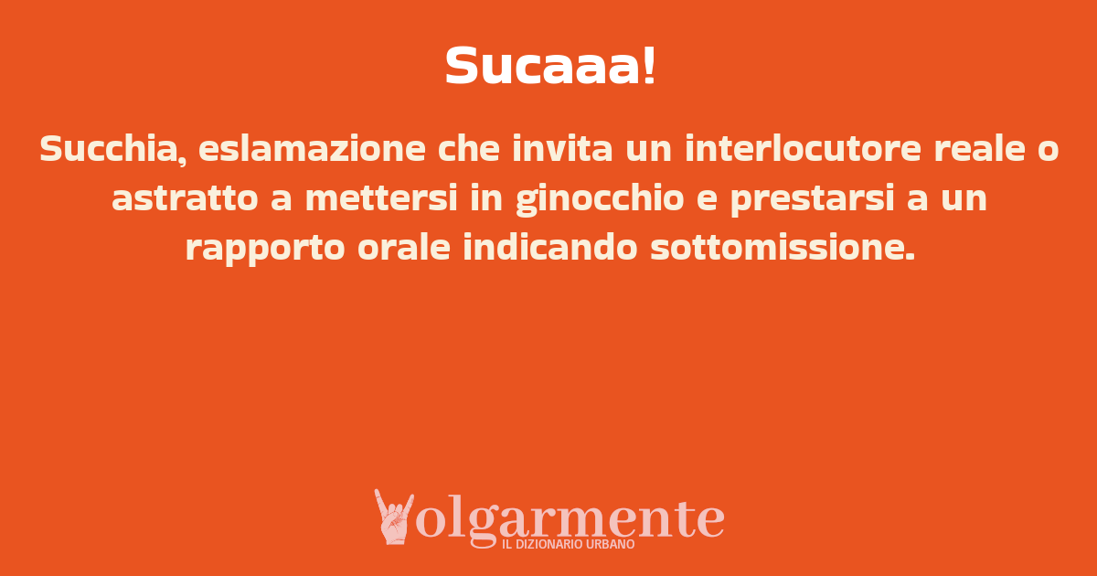 su0 down0 +0 Succhia, eslamazione che invita un interlocutore reale o astratto a mettersi in ginocchio e prestarsi a un rapporto orale indicando sottomissione. da stefano.cv Ricadi, VV, Calabria