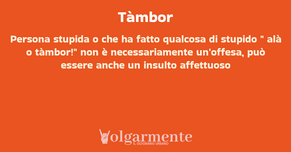 su0 down0 +0 Persona stupida o che ha fatto qualcosa di stupido " alà o tàmbor!" non è necessariamente un'offesa, può essere anche un insulto affettuoso da Anonimo Darfo Boario Terme, BS, Lombardia