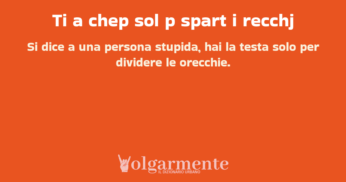 su0 down0 +0 Si dice a una persona stupida, hai la testa solo per dividere le orecchie. da Anonimo San Severo, FG, Puglia