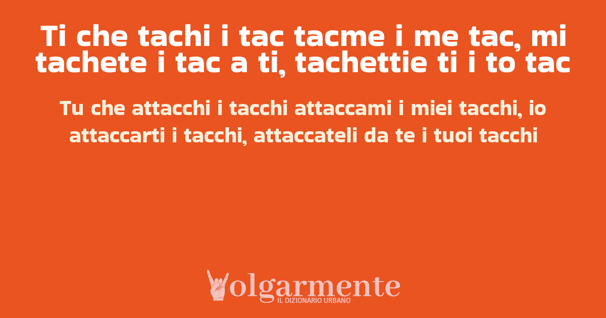 Ti che tachi i tac tacme i me tac, mi tachete i tac a ti, tachettie ti i to tac