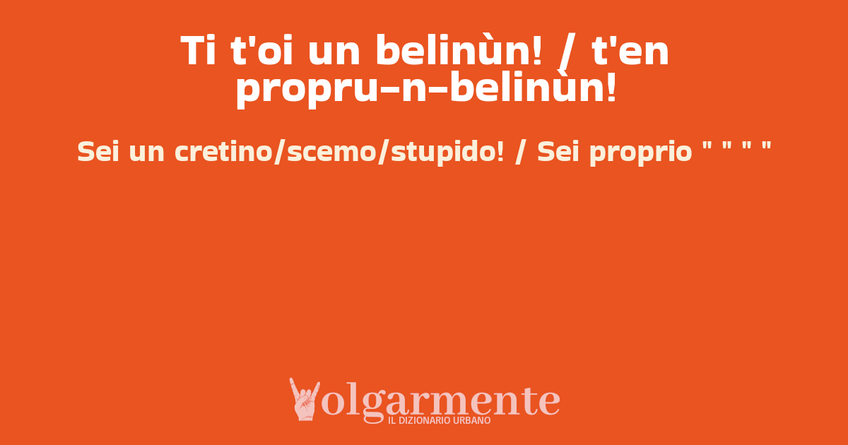 Ti t'oi un belinùn! / t'en propru-n-belinùn!