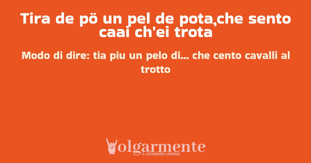 su0 down0 +0 Modo di dire: tia piu un pelo di... che cento cavalli al trotto da Anonimo Brescia, BS, Lombardia