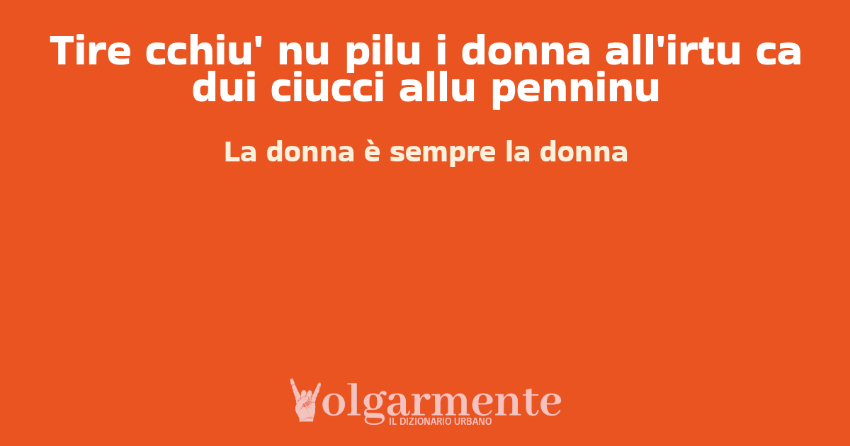 Tire cchiu' nu pilu i donna all'irtu ca dui ciucci allu penninu