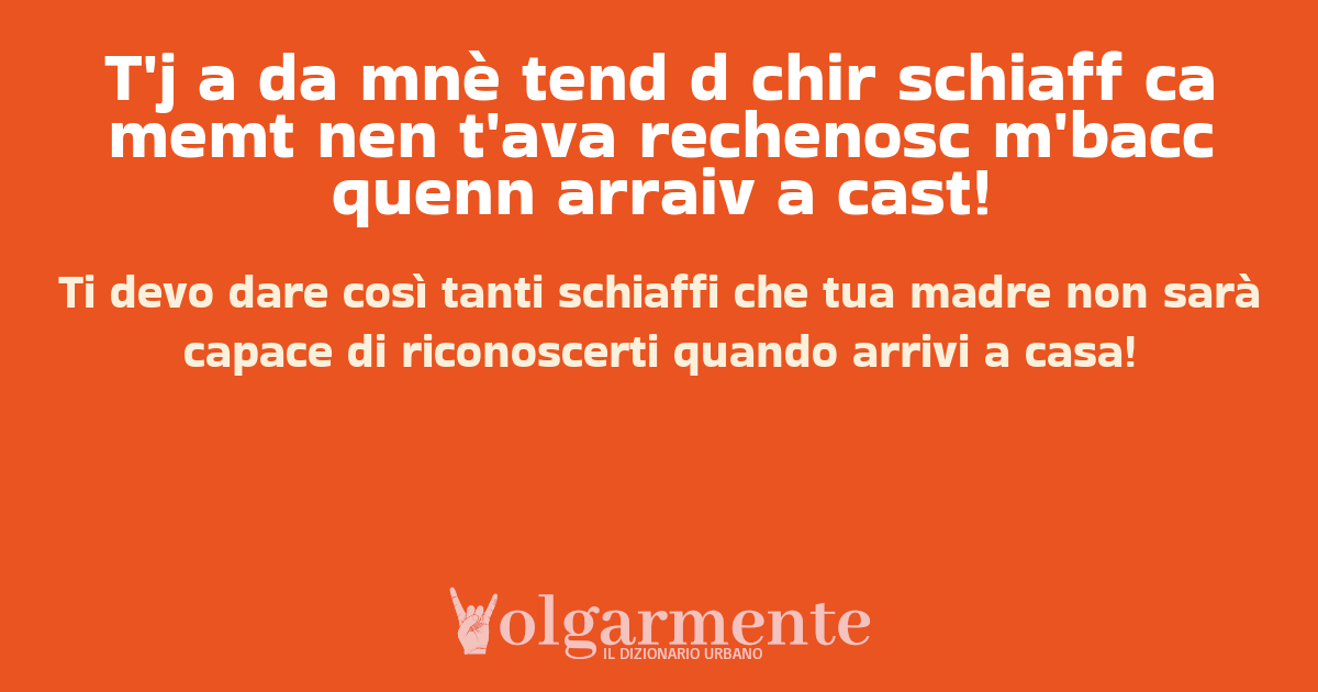su0 down0 +0 Ti devo dare così tanti schiaffi che tua madre non sarà capace di riconoscerti quando arrivi a casa! da Anonimo Molfetta, BA, Puglia