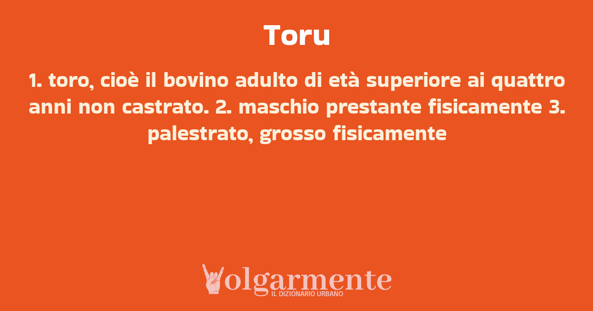 1. toro, cioè il bovino adulto di età superiore ai quattro anni non castrato.