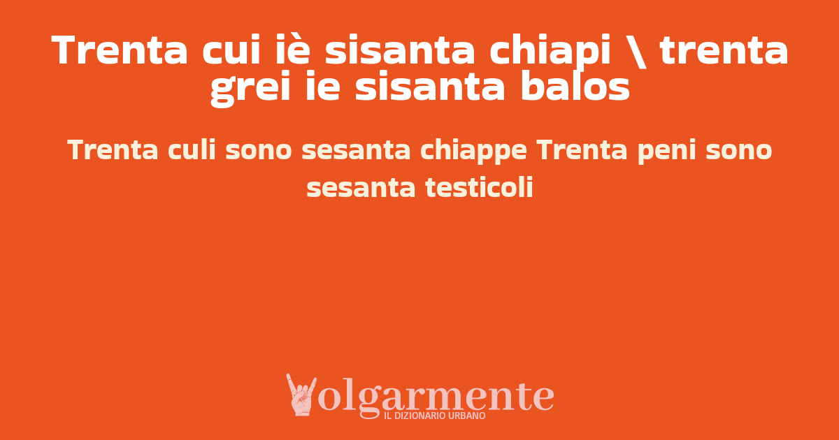 su0 down0 +0 Trenta culi sono sesanta chiappe Trenta peni sono sesanta testicoli da Anonimo Mantova, MN, Lombardia
