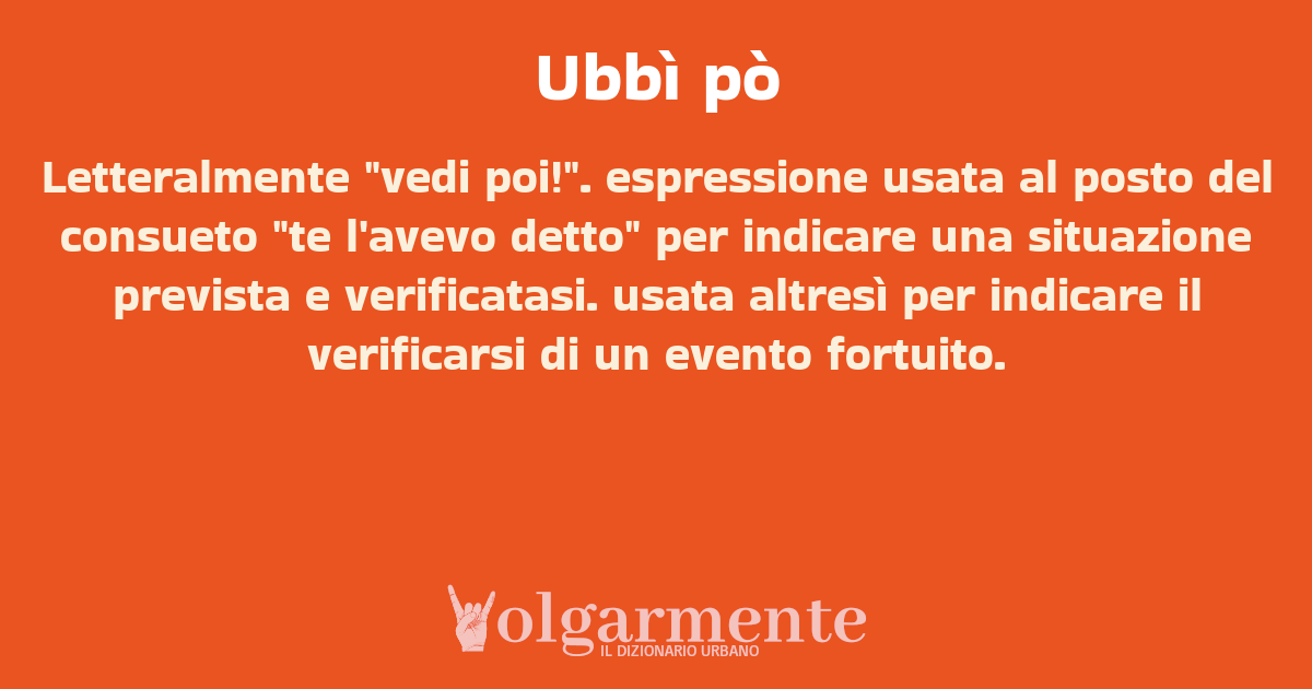 Letteralmente "vedi poi!". espressione usata al posto del consueto "te l'avevo detto" per indicare una situazione prevista e verificatasi. usata altresì per indicare il verificarsi di un evento fortuito.