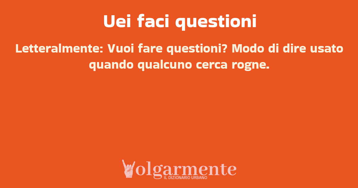 su0 down0 +0 Letteralmente: Vuoi fare questioni? Modo di dire usato quando qualcuno cerca rogne. da Anonimo Vernole, LE, Puglia