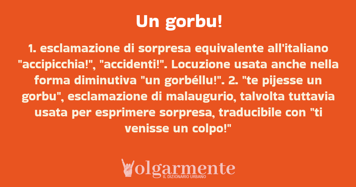 1. esclamazione di sorpresa equivalente all'italiano "accipicchia!", "accidenti!". Locuzione usata anche nella forma diminutiva "un gorbéllu!".