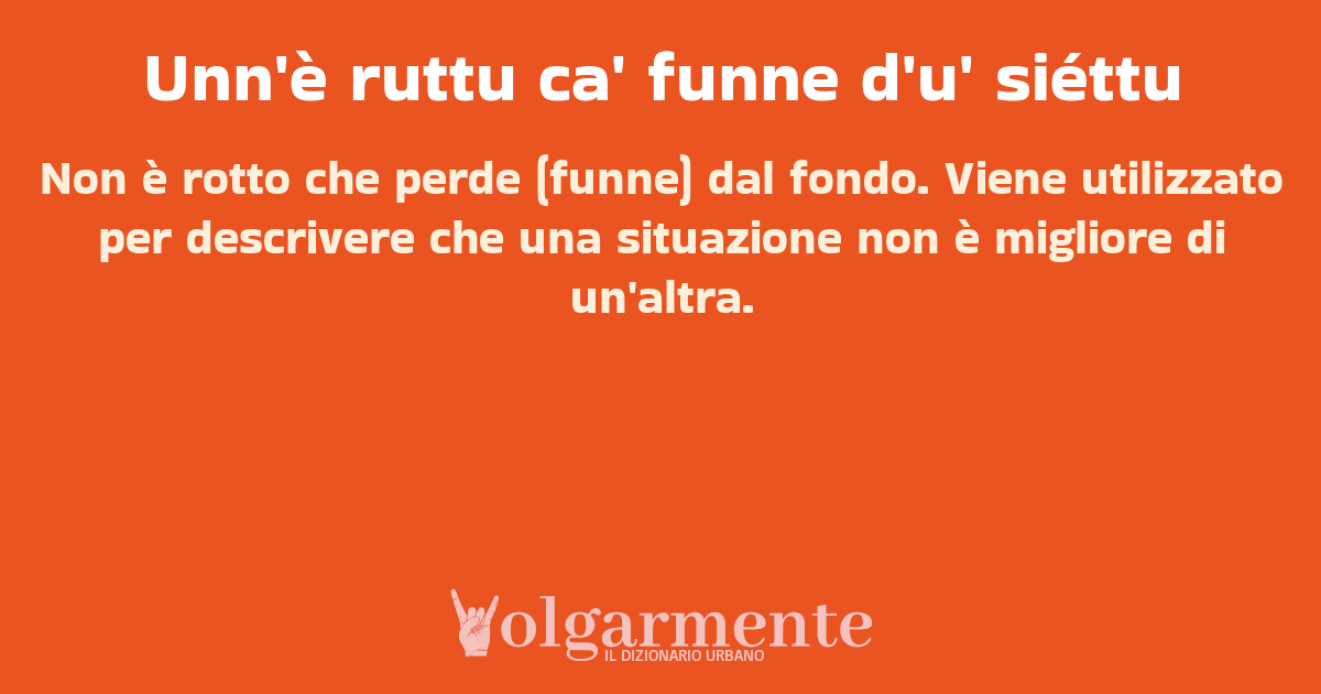 Non è rotto che perde (funne) dal fondo. Viene utilizzato per descrivere che una situazione non è migliore di un'altra.
