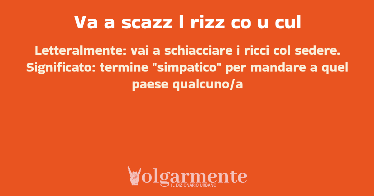 su0 down0 +0 Letteralmente: vai a schiacciare i ricci col sedere. Significato: termine "simpatico" per mandare a quel paese qualcuno/a da Anonimo Bari, BA, Puglia