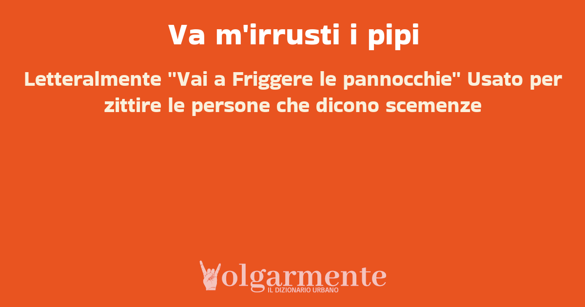 su0 down0 +0 Letteralmente ''Vai a Friggere le pannocchie'' Usato per zittire le persone che dicono scemenze da Anonimo Reggio Calabria, RC, Calabria