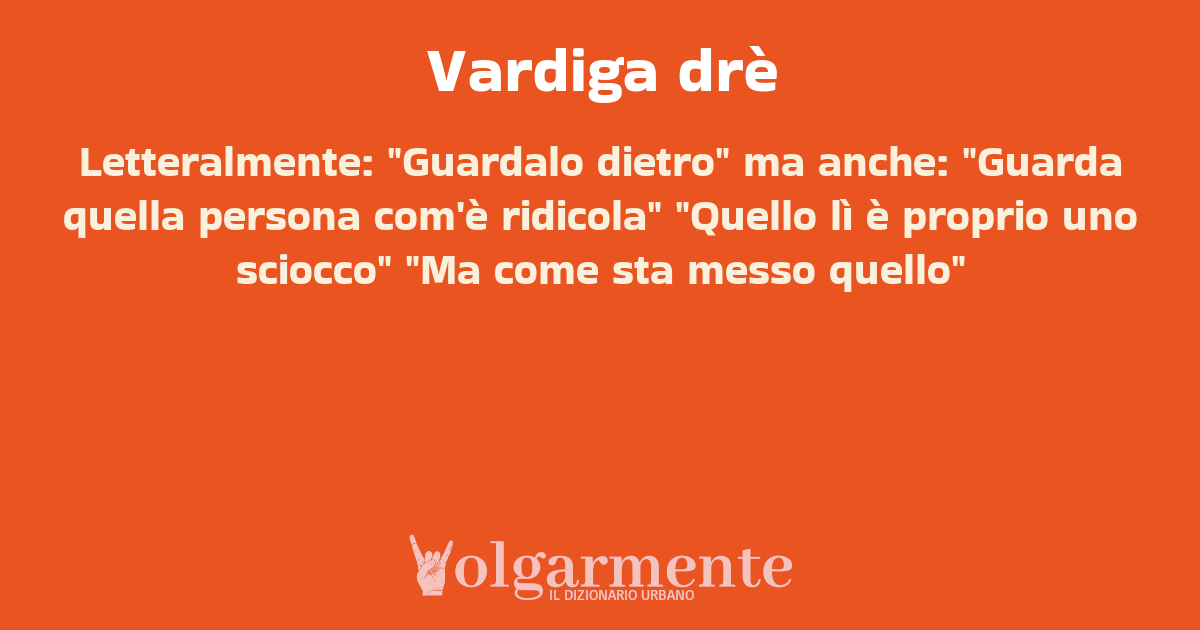 su0 down0 +0 Letteralmente: "Guardalo dietro" ma anche: "Guarda quella persona com'è ridicola" "Quello lì è proprio uno sciocco" "Ma come sta messo quello" da Anonimo Verbania, VB, Piemonte
