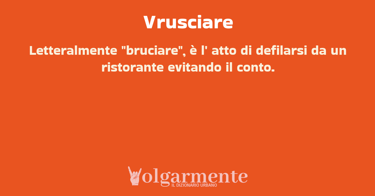 su0 down0 +0 Letteralmente "bruciare", è l' atto di defilarsi da un ristorante evitando il conto. da Anonimo Cosenza, CS, Calabria
