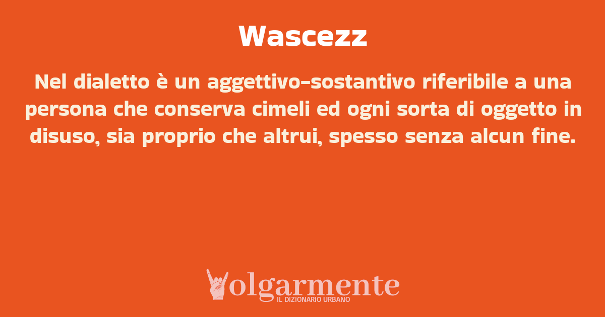 su0 down0 +0 Nel dialetto è un aggettivo-sostantivo riferibile a una persona che conserva cimeli ed ogni sorta di oggetto in disuso, sia proprio che altrui, spesso senza alcun fine. da Anonimo Gravina in Puglia, BA, Puglia