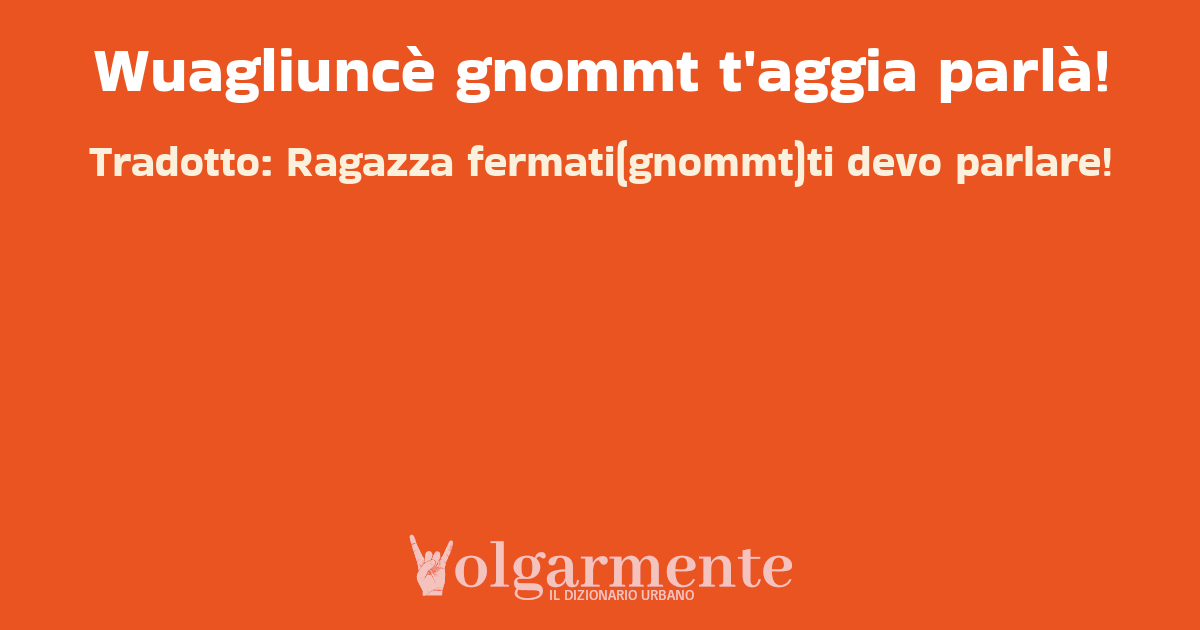 Wuagliuncè gnommt t'aggia parlà!